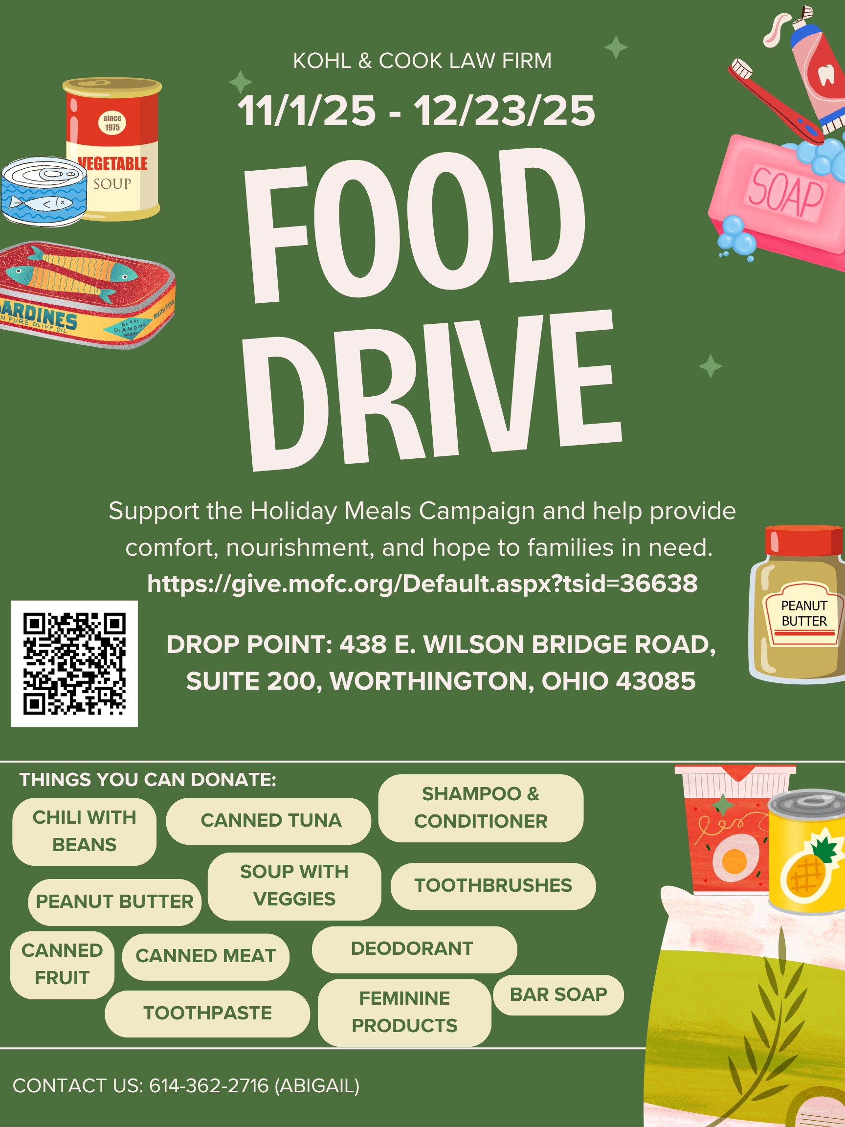 Ohio Business, Commercial, Construction, & Consumer Attorneys > Blog > Firm News > Kohl & Cook Holiday Challenge: Supporting the Mid-Ohio Food Collective